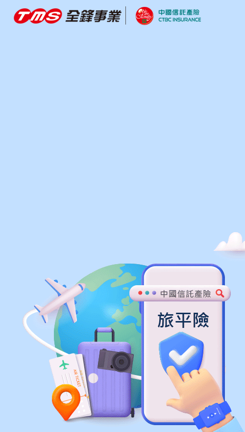 - 活動內容:活動期間,透過全鋒事業機場接送服務平台(本通路)指定活動推薦連結前往中國信託產險網路投保專區完成線上投保旅綜險(限每單筆保費滿500元(含)以上)投保完成即可獲得中國信託產險官網投保抽獎活動1次抽獎機會,投保越多、中獎機率越高!